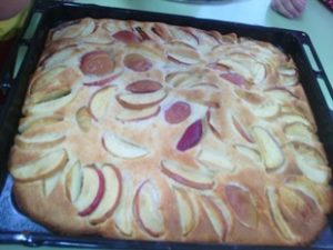 Во время экскурсии в продуктовый магазин детей заинтересовал хлебо-булочный отдел с разнообразной выпечкой. Во время обсуждения на детском совете появилось достаточно смелое предложение самим испечь пирог в нашем центре кулинарии. В процессе приготовления яблочного пирога узнали много нового и интересного: какие нужны ингредиенты и в каком количестве, чем и как можно измерять продукты (мерным стаканом, чайной и столовой ложкой, при помощи весов, условной меркой и т.д.), как замешивают тесто, сколько времени печется пирог на кухне детского сада. Пирог у нас получился замечательный. Каждый ребенок, попробовав его, унес домой рецепт для своей мамы.